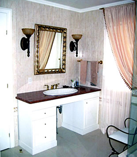 古い洗面所では照明が暗く、朝の支度がしにくいという声も。天井・間接照明の追加で、明るく使いやすい洗面所になります。